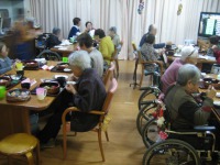 地元のお寿司屋さんにお願いして、握り寿司の桶盛りを作っていただき、召し上がっていただいたのですが、そのスピードの早いこと、普段なかなか食事が進まない方も、写真を撮る前に食べ終わってしまったりして、「美味しい!」という声もあちこちから上がりました。プロの仕事で、人を満足させることの大切さを教わった食事会でした。