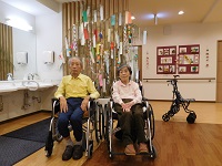 ☆~七夕~☆ Posted on 2016年7月8日 by グリーンライフ蕨 こんにちは(^∪^) 昨日は35℃を超える猛暑日となりました。 まだ暑さに身体が慣れていないこの時期ですが、皆さま体調を崩していませんか?(><) そして皆さま!季節はずれの暑さのせいで、昨日が七夕だったことをお忘れではないですか? グリーンライフ蕨では七夕飾りをバックに記念写真をパシャリッ★ 2週間ほど前から笹を飾り始め、皆さまと一緒に毎日少しずつ飾りを作り、願い事の短冊を飾って頂いたので、最終日にはこんなに華やかな七夕飾りとなりました!(>∪<)♪ どうか皆さまの願い事が叶いますように…★ 関連