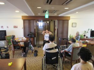 ★ 体操 ★ Posted on 2017年6月15日2017年6月15日 by メディス越谷蒲生 本日おやつ時に五階のラウンジにて外部から先生を呼び、椅子に座ったまま出来る体操をしておりました。 簡単なようで意外と頭を使うようで、難しい…という感想をいただきました。 でも、動いているとだんだんできる様になってくるので楽しい!との感想も頂きました! 関連
