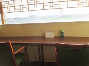 ■ 施設紹介 ■ Posted on 2017年7月19日 by メディス越谷蒲生 こんにちは!本日は施設紹介をしようと思います。 6階のラウンジにはこのように窓沿いに机と椅子が置いてあり、蒲生の街を一望しながら休憩することが出来ます♪ 6階には自動販売機がないので持参しないといけませんが、飲み物をここで飲めばちょっとしたカフェ気分に…?ぜひお試しあれ♪ ! 関連