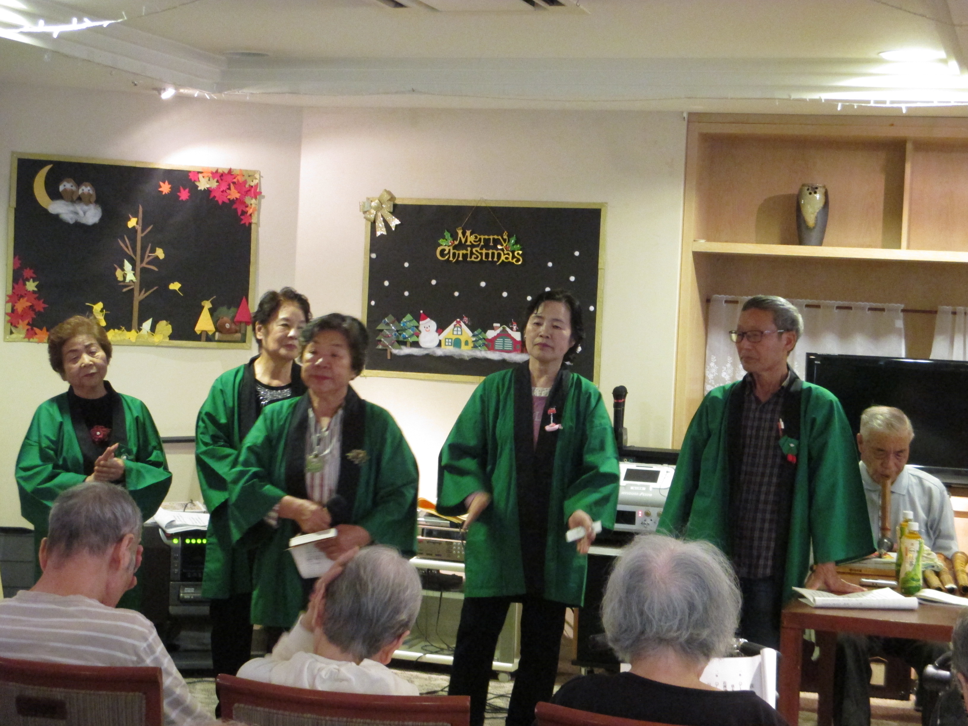 本日のレク Posted on 2017年11月4日 by メディス越谷蒲生 本日のレクは民謡です。 地元のボランティアの「浅見民謡会」の方たちです。 こちらの施設にはもう9年も来ていただいておりますベテランの方々。 尺八、三味線と共にこぶしのきいた、うた声にうっとりしてしまいます。 入居者様も手拍子をしたり、一緒に歌を歌ったり、活気あって本当に楽しそうに過ごされていました。 月2回来られています。ぜひ見に来てください。 関連