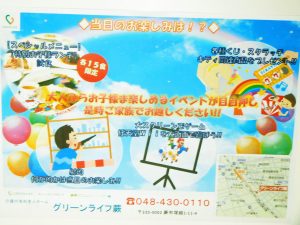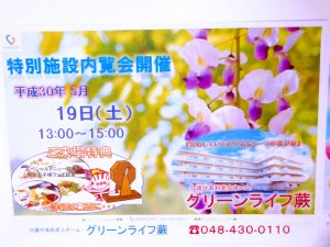 グリーンライフ蕨、内覧会のお知らせ Posted on 2018年5月18日 by グリーンライフ蕨 明日、5/19(土)のイベントのお知らせです。 明日、13:00~15:00、 グリーンライフ蕨にて特別施設内覧会を開催致します! 内覧会では特別メニューの昼食を無料で提供させていただきますよ♪ 他にも射的やくじ引きなどもご用意しておりますので、 皆様遊びついでにふらーっとよっていってくださいね☆ 関連