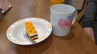 その後皆様にケーキと紅茶をお配りし、召し上がって頂いたのですが、マグカップや皿をお作りになった方々に早速マグカップと皿を使うかお訊ねしたところ、「勿体ない、汚れちゃうから使わない」とのこと。