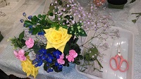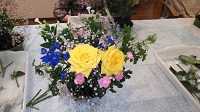今回は、黄色い大きなバラが2輪入っていたので、それをメインに据えてアレンジメントを作られている方が多かったです。