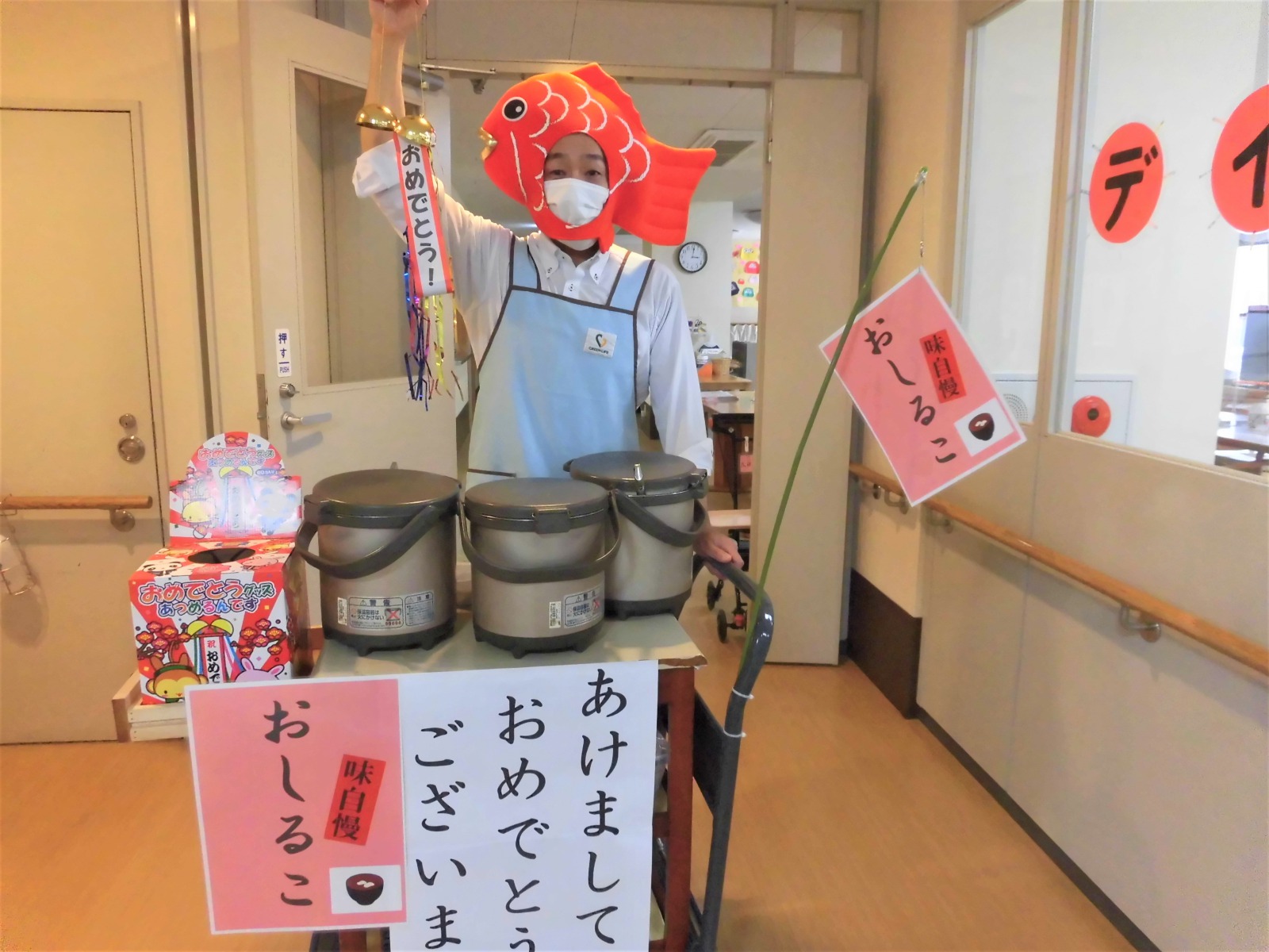 ☆おしるこ☆ Posted on 2022年1月2日2022年1月5日 by はぴね弥富 おはようございます! はぴね弥富です(*^-^*) 年末から雪が降る日が多く 冷え込む日が続いてるので 皆さんにあったまってもらおうと いうことでお汁粉を昨日用意させて 頂きました♪ もはや弥富の施設では恒例に なりつつある施設長の金魚の被り物・・・ 今年も被り物スタイルは継続していく様子です(笑) 暖かいお汁粉に入居者様も喜んでいただけた ご様子(^-^) 2022年も引き続き皆様に喜んで 頂けるようスタッフ一同努めさせて 頂きます! 関連