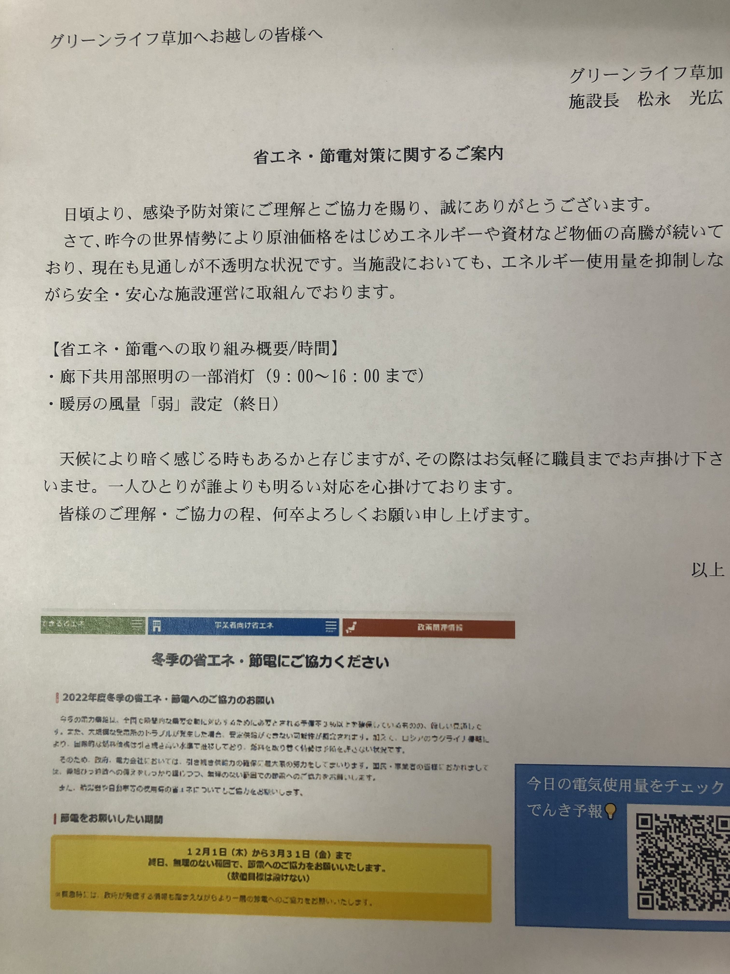 さて、今日はグリーンライフ草加へお越しになる際にご協力を賜りたくご案内申し上げます。