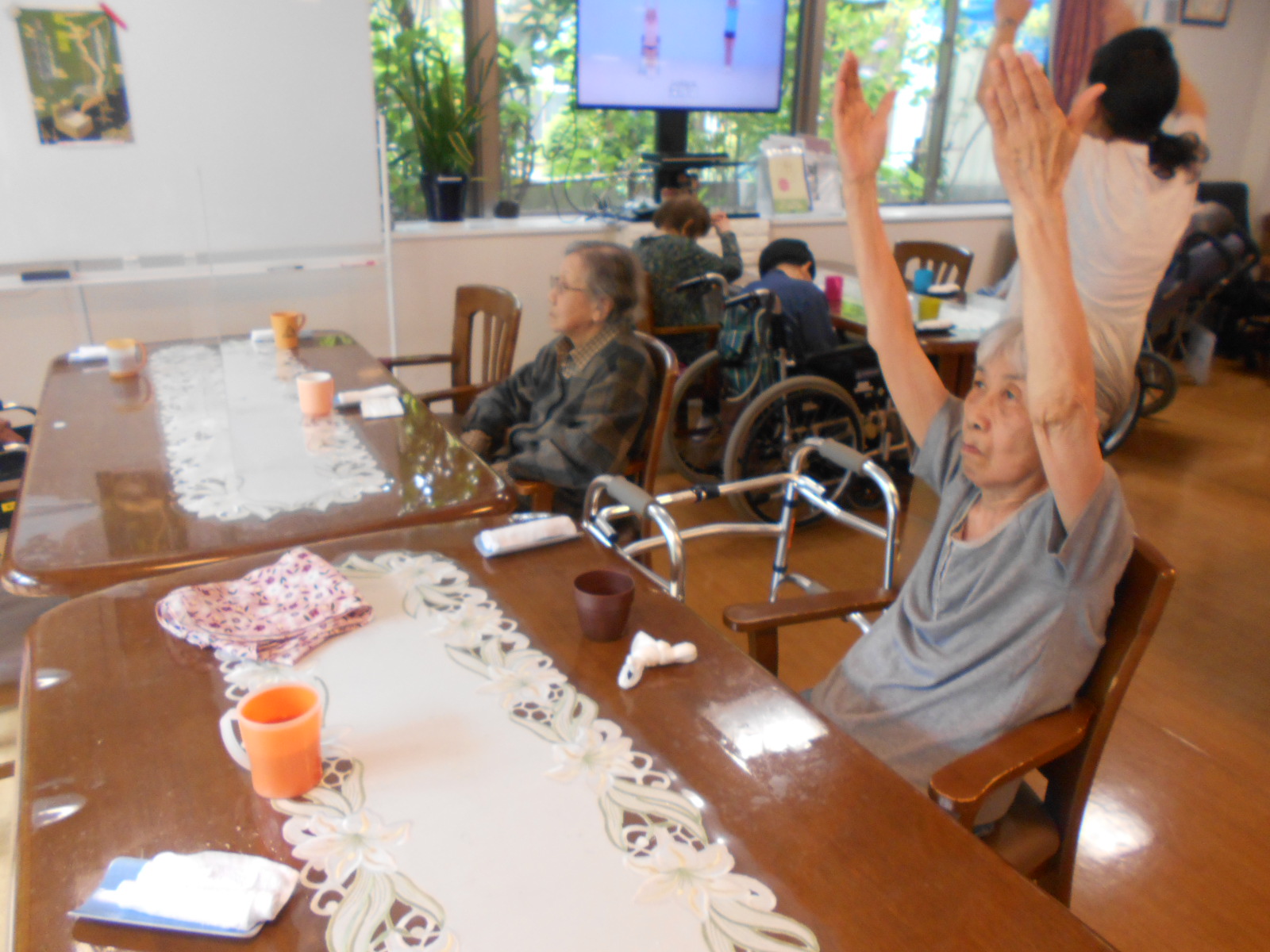 お昼前の・・・ Posted on 2023年6月27日 by グリーンライフ草加 本日は昼食前の体操をご紹介します(^_-)-☆ グリーンライフ草加では毎日昼食前に体操を行っています(*´▽`*) 今日のメニューはラジオ体操!! 積極的に立ち上がり体操を行う方、座りながら上半身だけ行う方、体操している方を応援する方と様々でした(*^▽^*) ラジオ体操だけではなく、嚥下体操、カラオケ等毎日違うメニューを介護スタッフが考えてくれています。 食事前に体操をする事によって、誤嚥のリスクが減るそうですよ~(#^.^#) 関連