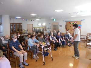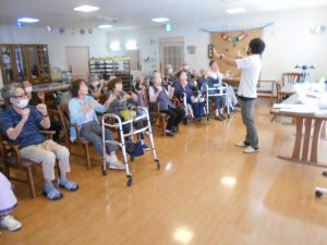 音楽療法♬ Posted on 2023年7月25日 by グリーンライフ草加 毎週火曜日は音楽療法の日(^^♪ 本日は参加者が多く大変盛り上がっていましたよ! 音楽に合わせ口腔体操、全身運動、合唱とメニューが進んでいきます。 終了後は先生が一人一人をお見送り! 入居者の皆様も名残惜しそうに手を握る姿が印象的でした。 関連