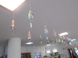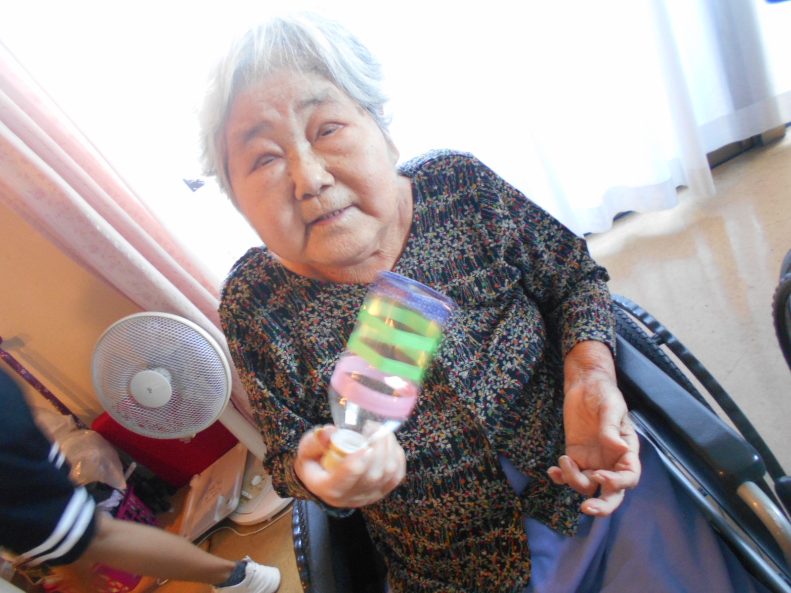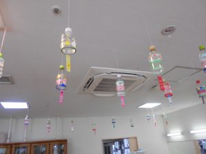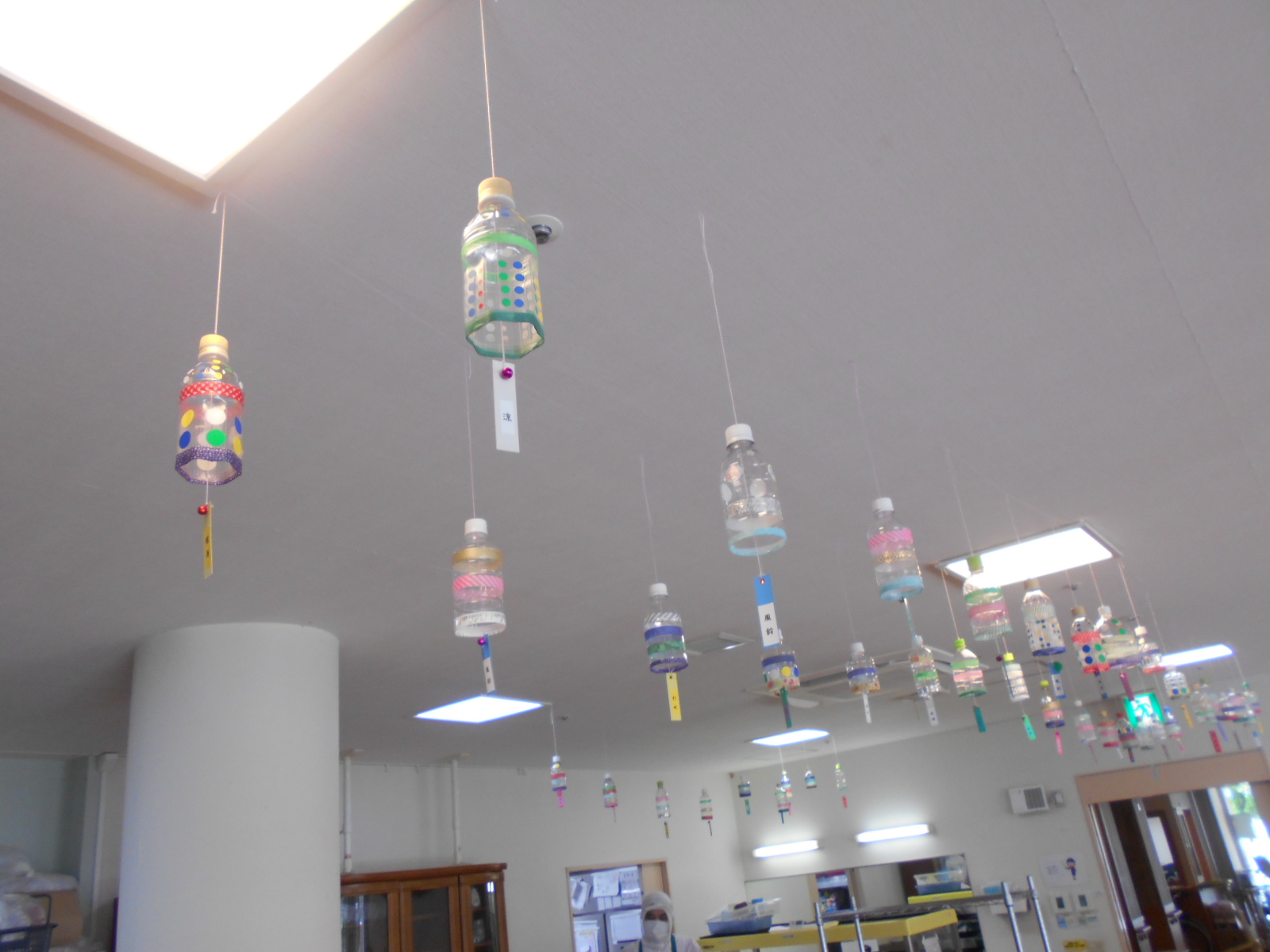 🎐夏の風物詩🎐 Posted on 2023年8月10日 by グリーンライフ草加 入居者の皆様と先月から制作しているペットボトル風鈴! 中には短冊と勘違いしてか願い事を書いてしまう入居者様がいたりと完成まで時間がかかりましたが、昨日無事完成しました(^^)/ 今日は早速食堂の天井一面に飾り付けをしましたよ(^_-)-☆ 関連