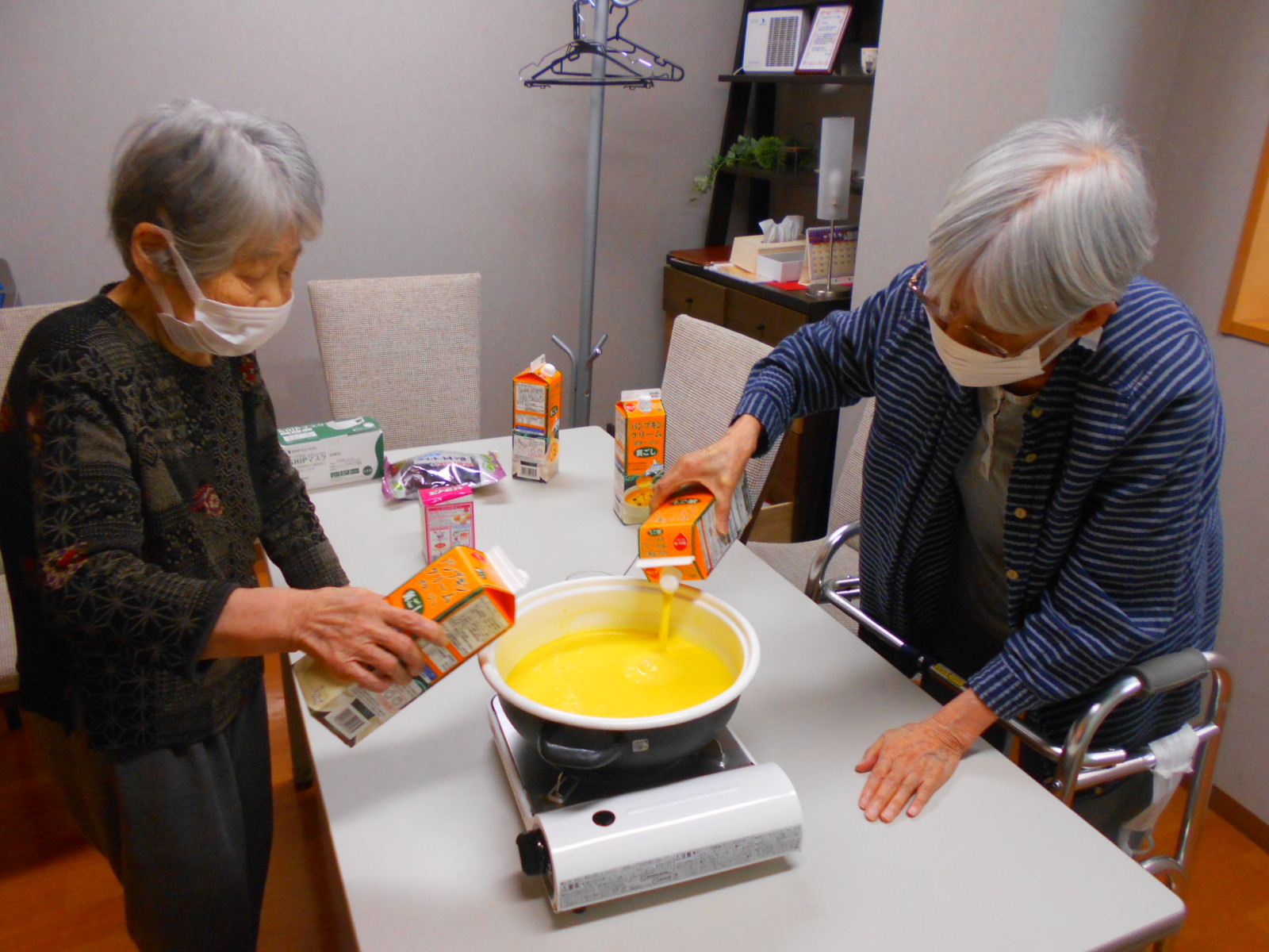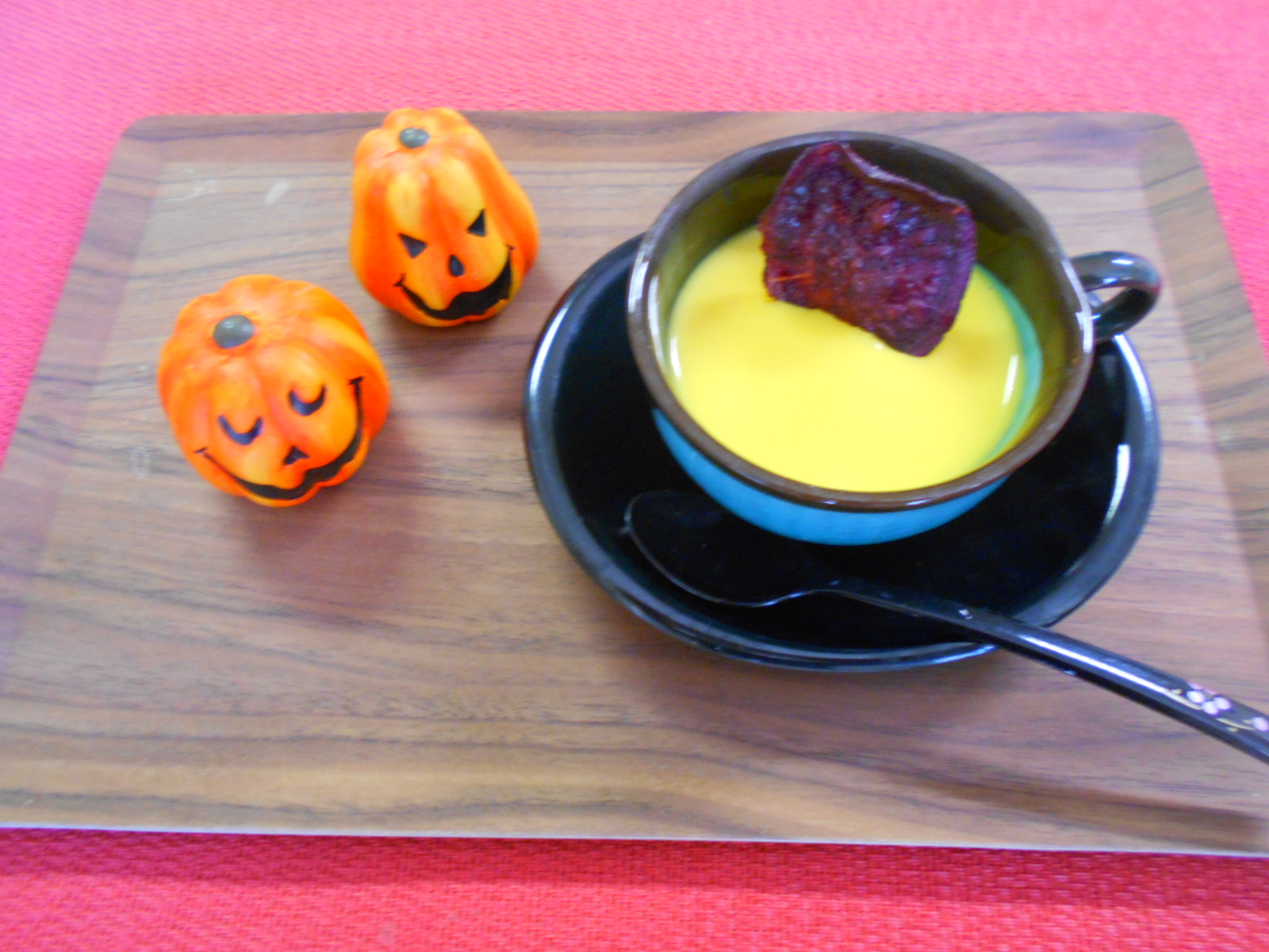 午前中に作ったプリン液を冷蔵庫で冷やし固めれば『カボチャプリン』の完成( ^)o(^ )