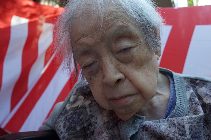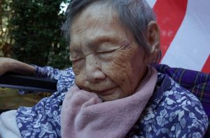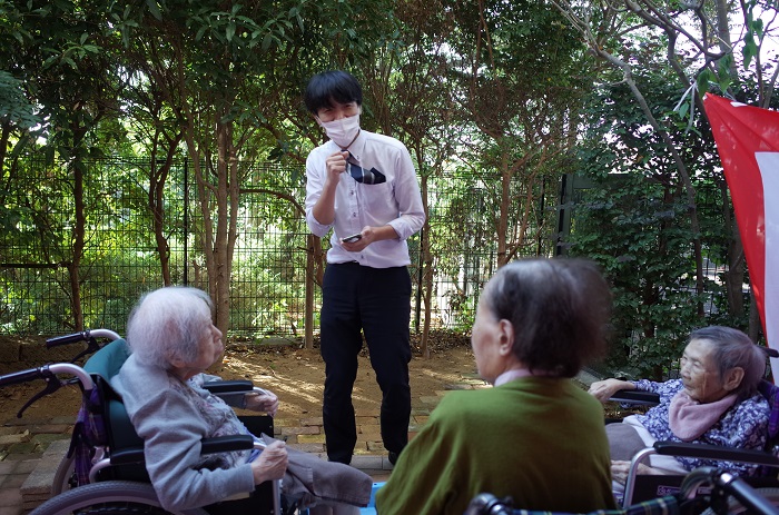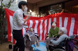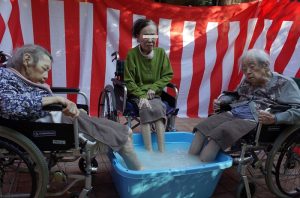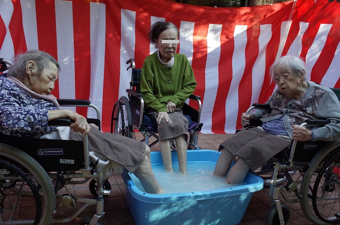3名の入居者様をお誘いし中庭で足浴をしました♨