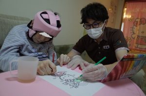 斎藤さん「1階の日勤者さんが2階で補水介助中だったので、1階に戻って来てから話そうかなぁと。」