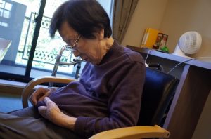 一生懸命お洋服の毛玉を取っていました。