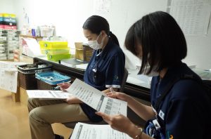 1日、1名から2名の看護師で57名の利用者様の看護をしてくれております。