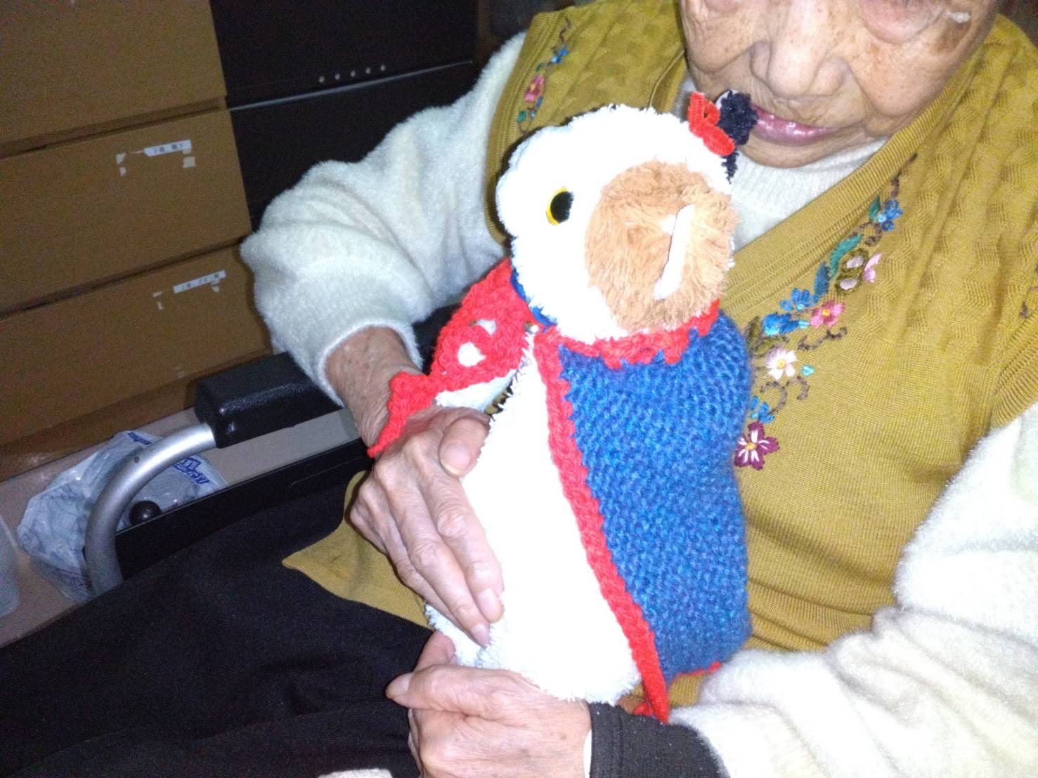 他の利用者様が猫ちゃんのために編み物をして下さいました。