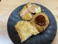 流しそうめんの他に、コロッケ、海老カツ、ささみの梅肉はさみ揚げ! デザートは、あんこ玉にしました🌟