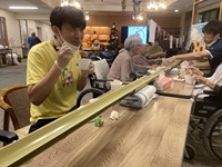 「僕も!僕も!!(笑)」施設長身から流して!皆で一緒に食べるのは、やっぱり一段と美味しいですね~