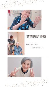☆訪問美容☆ Posted on 2025年10月17日 by はぴね国分 こんにちは。 霧島市国分中央にあります 介護付き有料老人ホーム はぴね国分です。 先日は、 皆さんの楽しみにしている 訪問美容の日でした。 カラーやカットをし、お披露目会へ… スッキリ綺麗に仕上がり大満足でした♡ ☆ はぴね国分 ☆ 0995-48-7751 関連