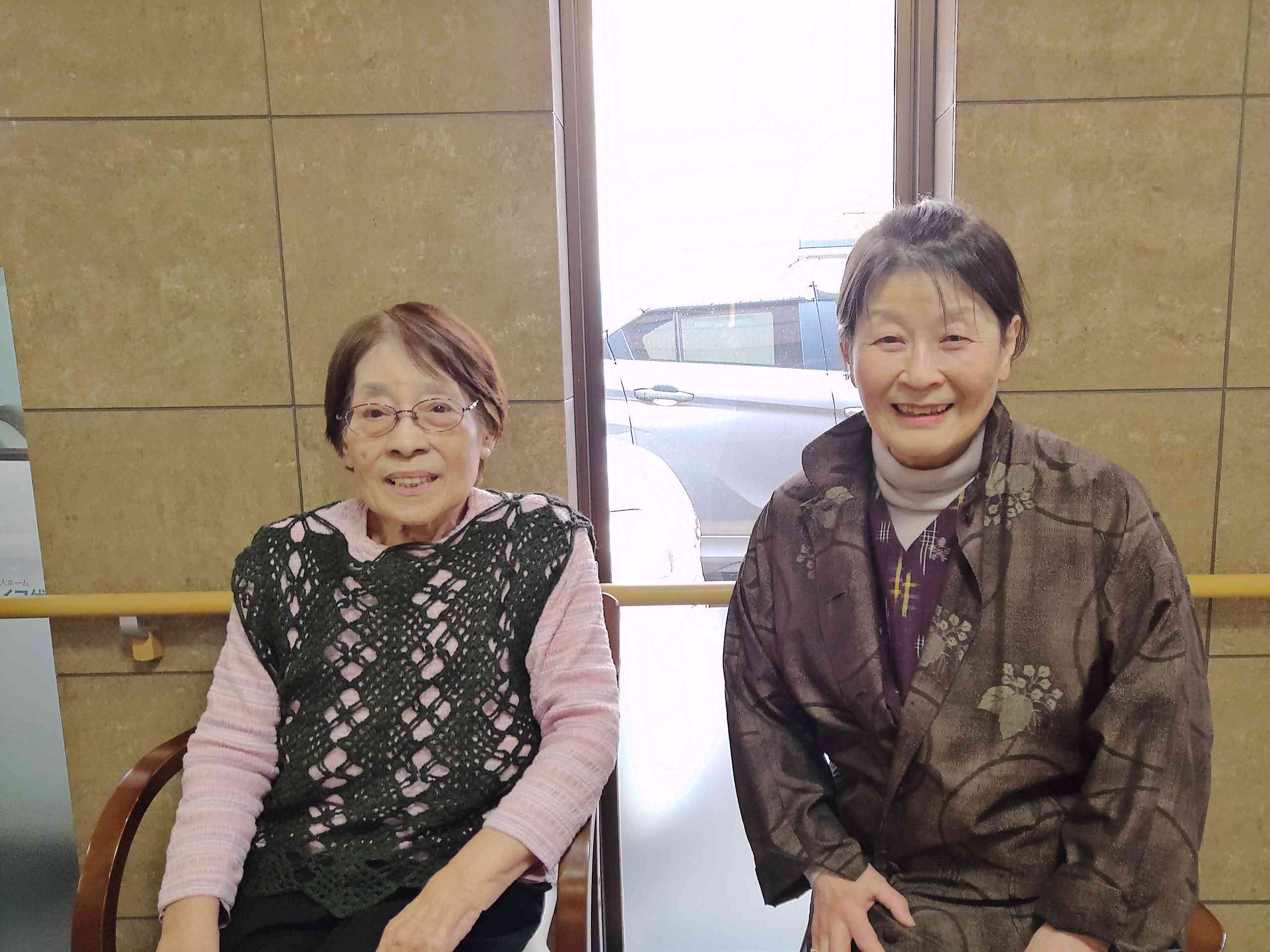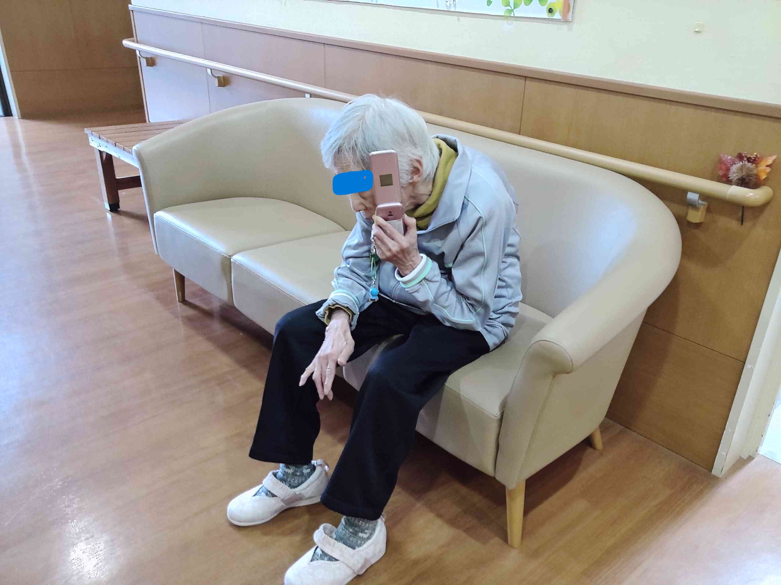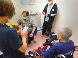 携帯でお友達と楽しそうにお話している方、久しぶりにお知り合いが面会に来てくださり満面の笑みの方・・