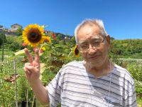 男性と女性の入居者様とスタッフの3人で、散歩に出かけられました。