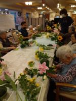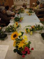 ピンクの百合と🌻をメインで活けられた方が多いです。百合も品種改良されているようで花びらの形が変わっていました。来月から参加希望の方は今日は見学されていました。お花と向き合っている皆様のお顔は本当に優しく笑顔でした🌸今回も素敵なアレンジメントが完成しました。
