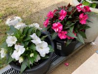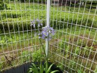 昨年植えたアガパンサス、インパチェンスが雨に濡れてきれいに咲いています。