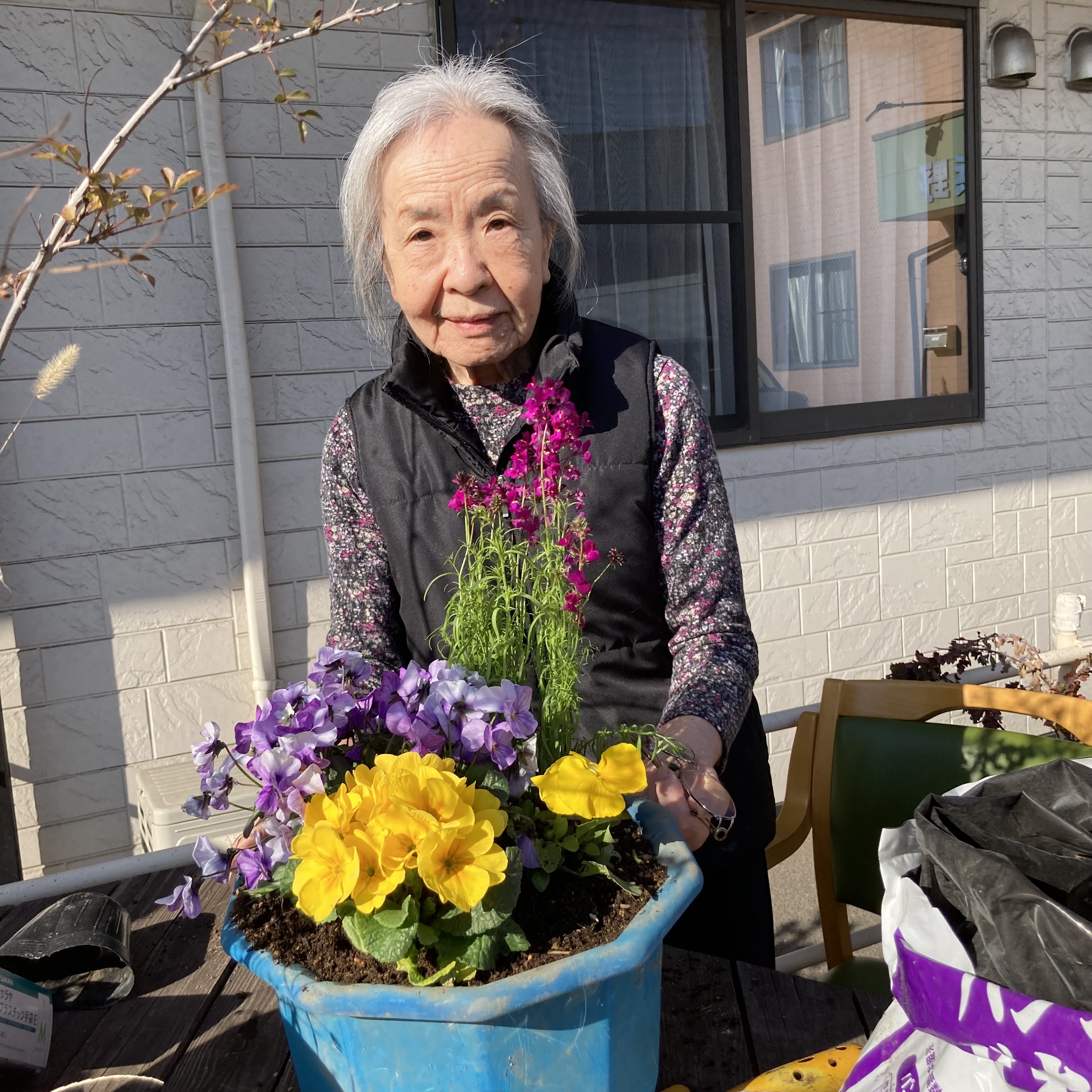 色とりどりのお花を前にみなさん笑顔で土に触れながら作業を楽しまれていました!