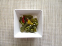「ピーマンといんげんは、彩り鮮やかで、視覚からも食欲をかきたてられるわ。」