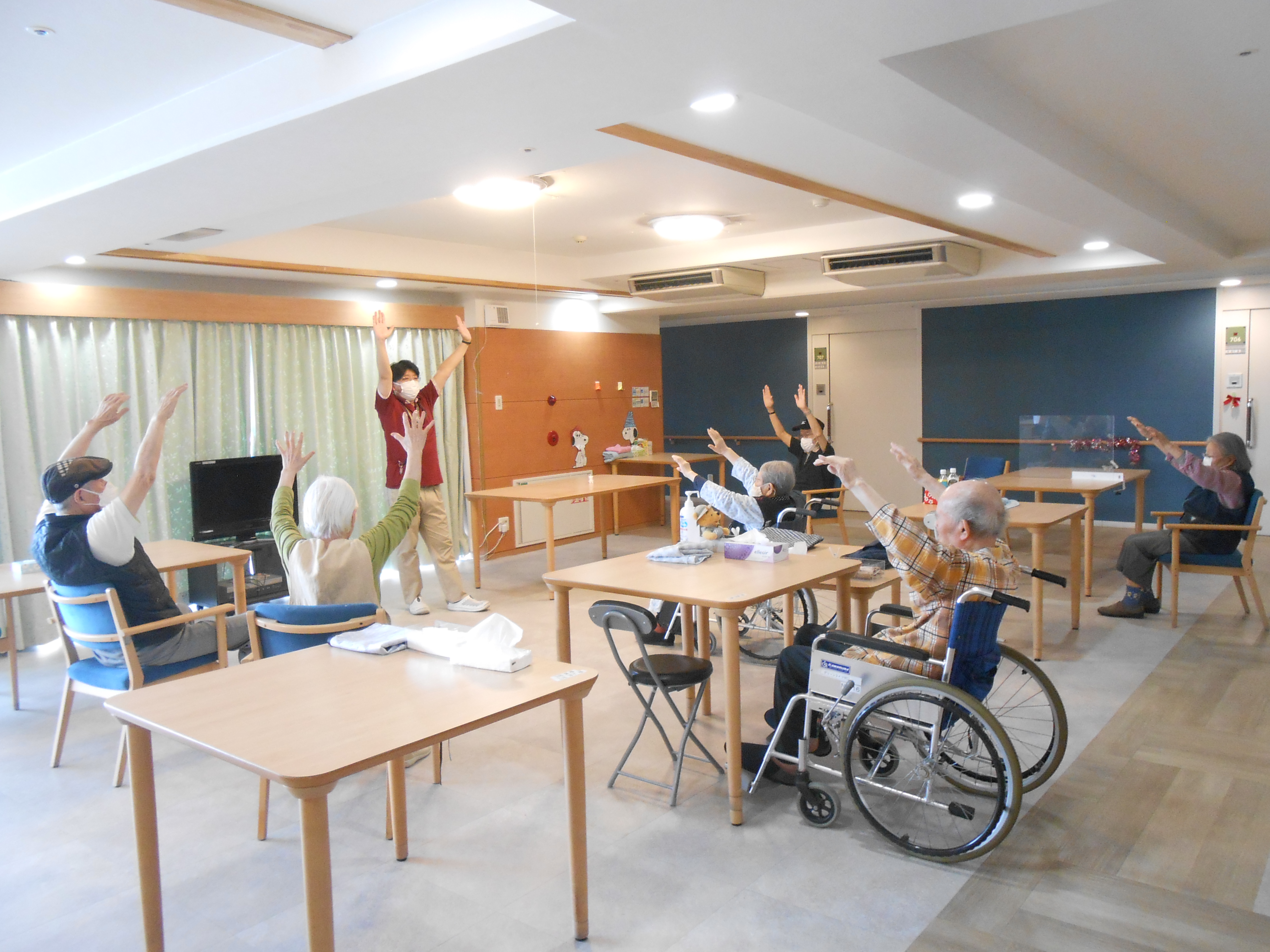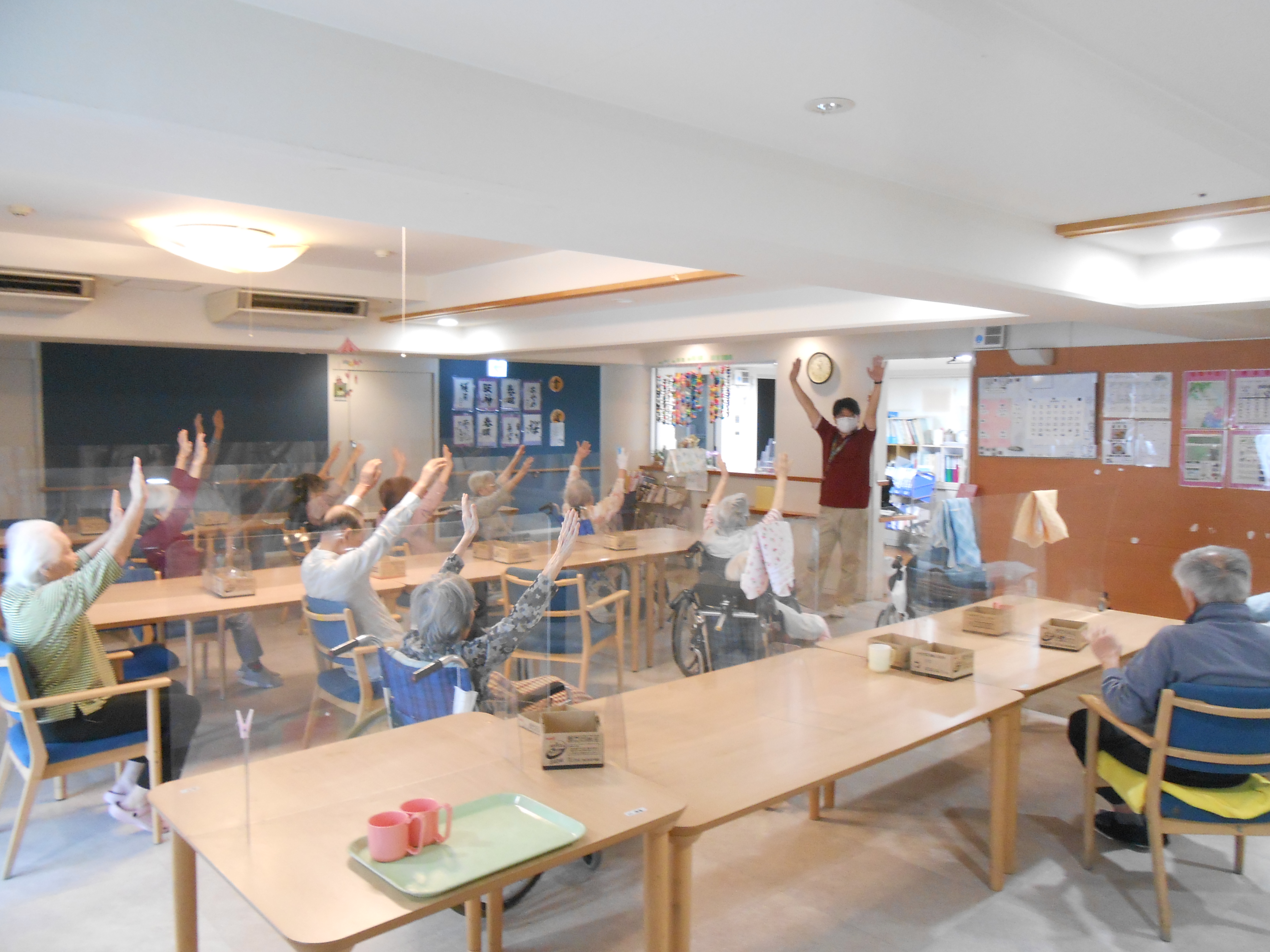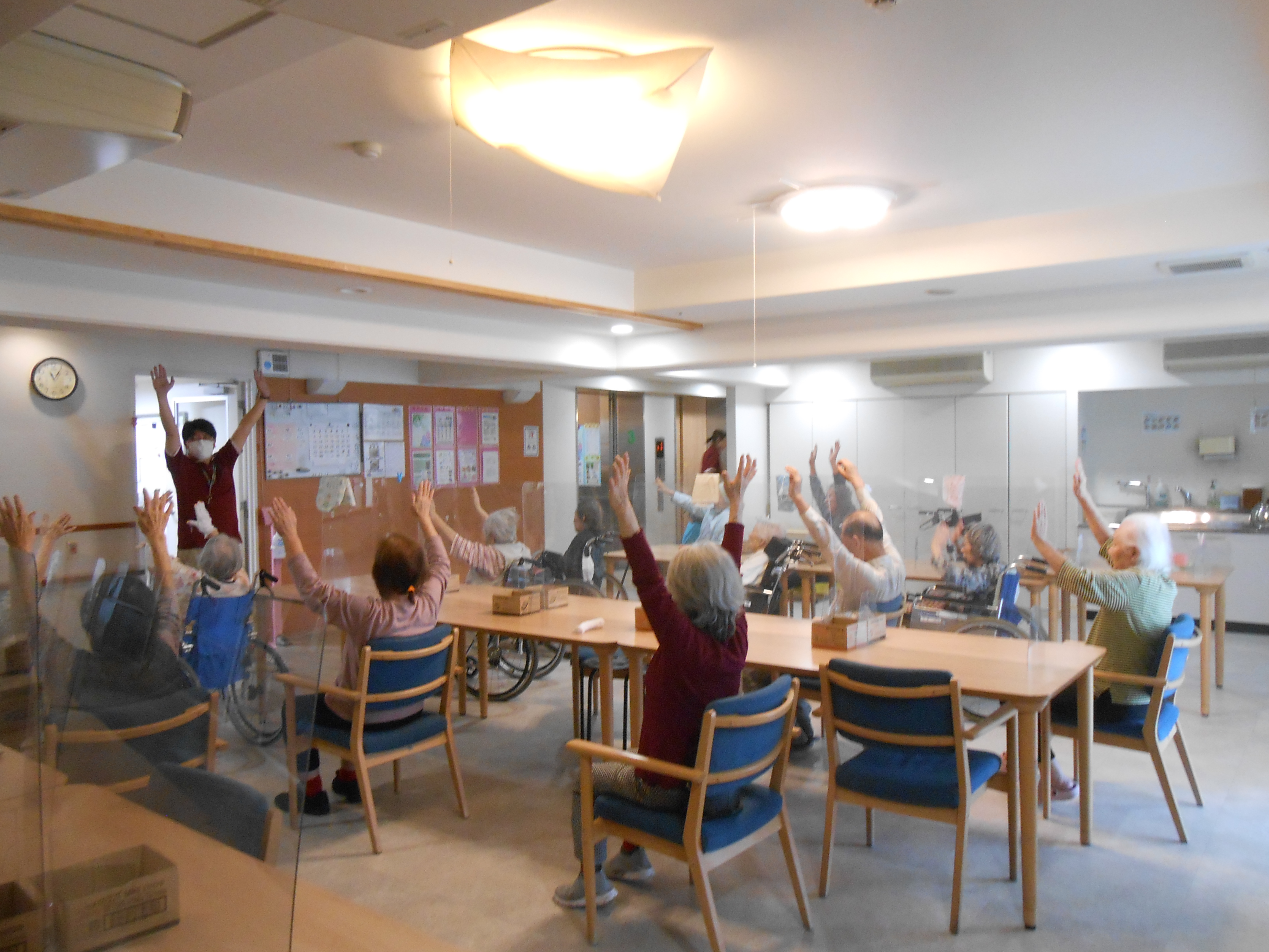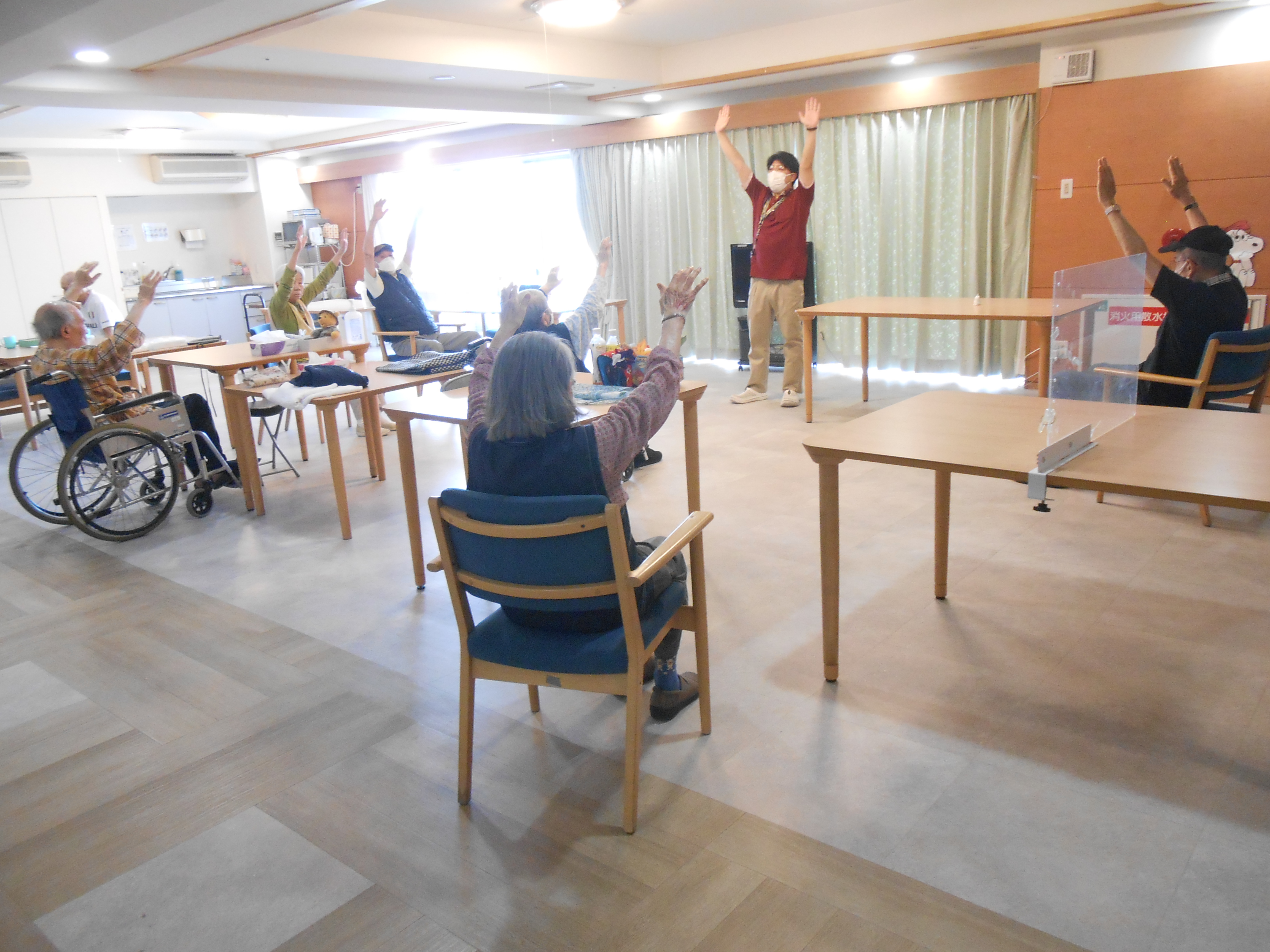 音楽療法で皆さん歌声と共に、体も動かして頂きました✨