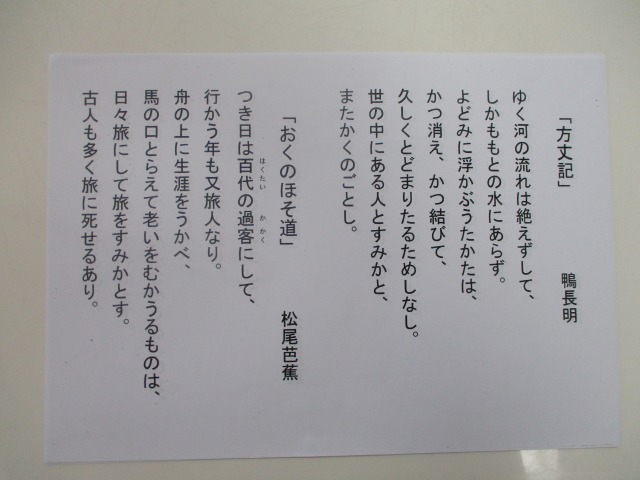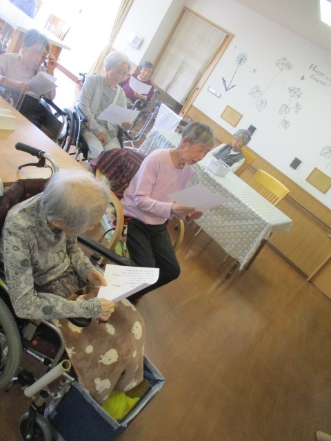 今日は午後から【朗読会】がありました🎤準備体操、発声練習ののち、詩の朗読を行いました‼本日は松尾芭蕉の「おくのほそ道」を朗読しました(^^♪おひとりずつ朗読に挑戦‼皆様、しっかりと大きな声で正確に読んでおられました\(^o^)/とても素晴らしかったです(⋈◍>◡<◍)。✧♡最後は手遊び唄でおひらきとなりました🌟