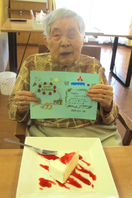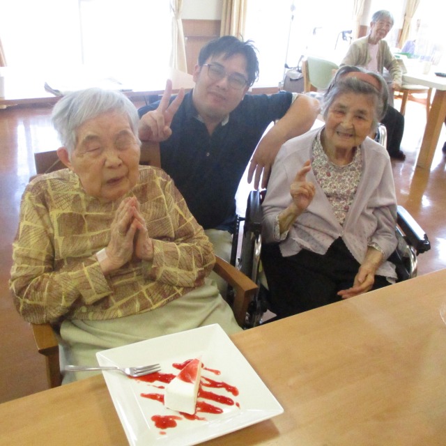 今日はご利用者様のお誕生日‼95歳になられました\(^o^)/とってもお若い(⋈◍>◡<◍)。✧♡同席の方も一緒にお祝いしてくださり、ケーキを見てとてもうれしそうな表情をされていました(^^♪おめでとうございます🎊これからもますますお元気でいてください(*’▽’)