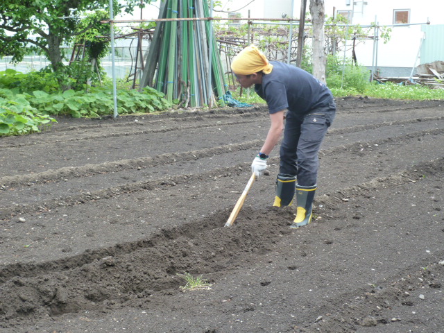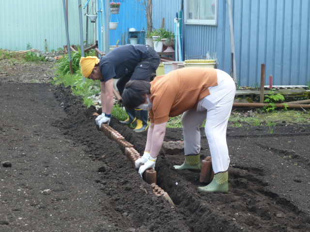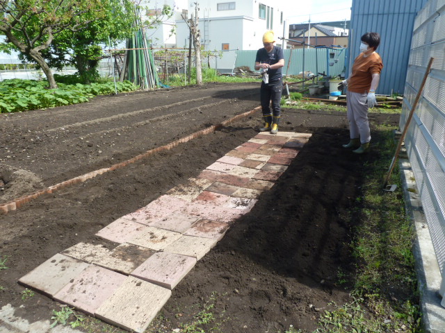 土をならし、車椅子でも入れるようにレンガを敷き詰める作業をしましたが