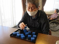 心地よい風も吹いていたため、おやつ前に皆さまと外気浴を行い、軽い体操や言葉遊びを楽しみました。