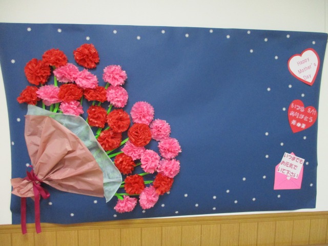 5月11日の【母の日】にむけて素敵な作品が出来上がりました(*^-^*)ご利用者様、お一人様ずつカーネーションの花を貼り付けていただきました‼