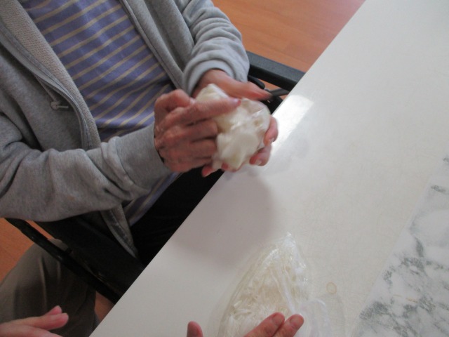 屋上で採れた大根をクッキング♬ご利用者様と看護師さんで楽しそうに作っておられました(*^▽^*)「おおさじ一杯入れてください~‼」と看護師さんが言うと「はい。い~ち‼」とご利用者様。とても楽しそうな声が聞こえてきて、思わず駆け寄ってしまいました(*^-^*)美味しそうなお漬物が出来上がっていました✨