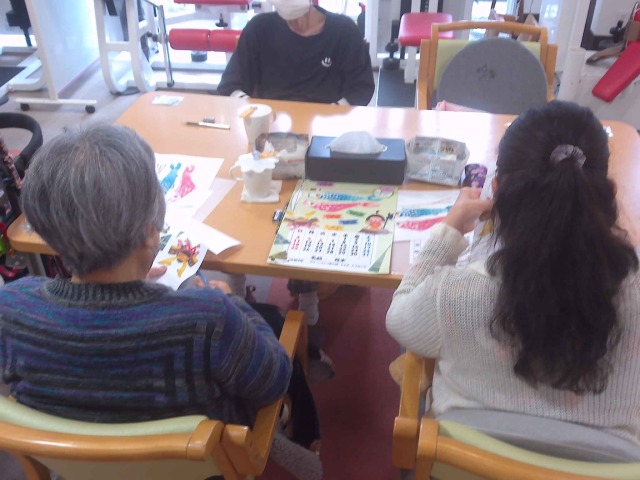 皆さんお分かりになりましたか?沖今宿デイでは、40歳代から100歳超えの様々な方がご利用されています。それによって作品にもそれぞれの個性が映し出されています。