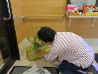 先日、ボランティアの方が玄関のお花を生け替えてくださいました。