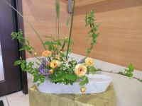 先日、ボランティアの方が玄関のお花を生け替えてくださいました。