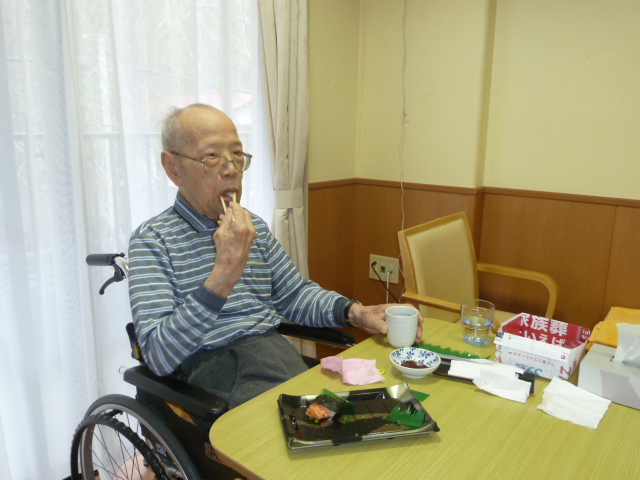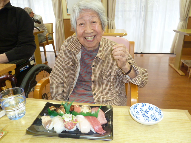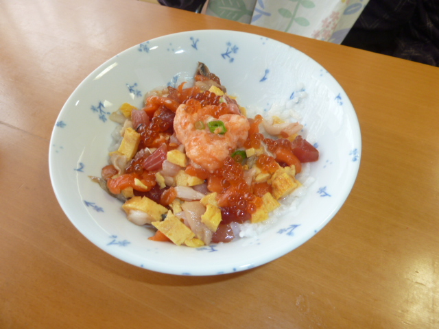 お粥が主食の方もいるので、ネタのみテイクアウトして職員がちらし寿司風に盛り付けをしてくれました。