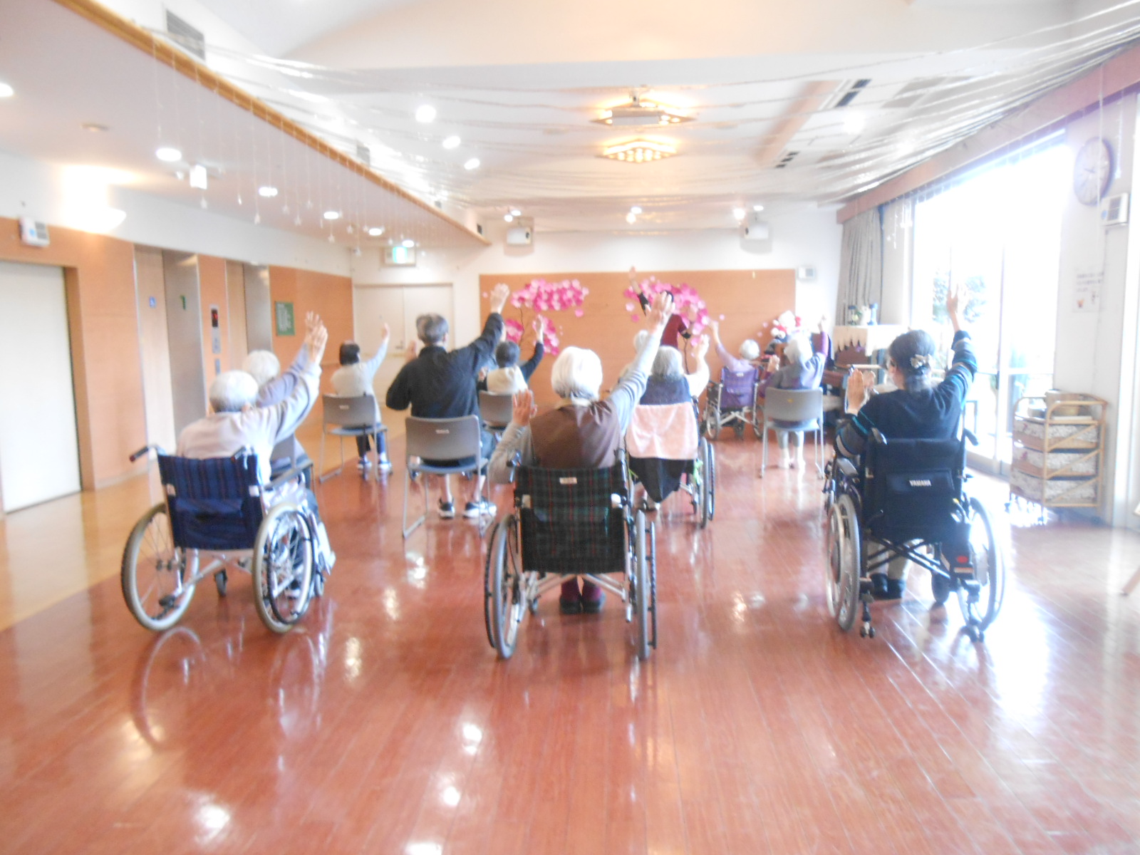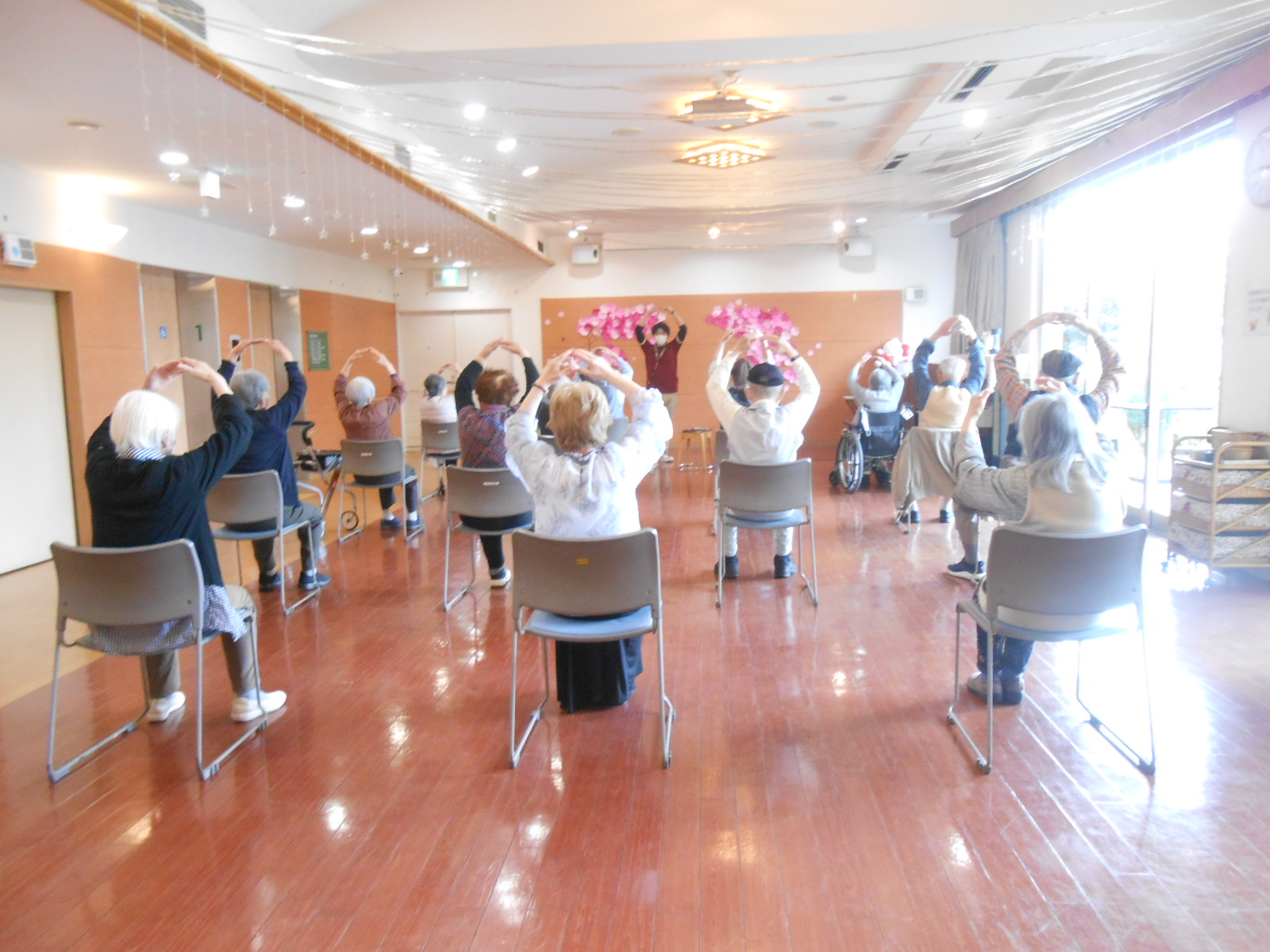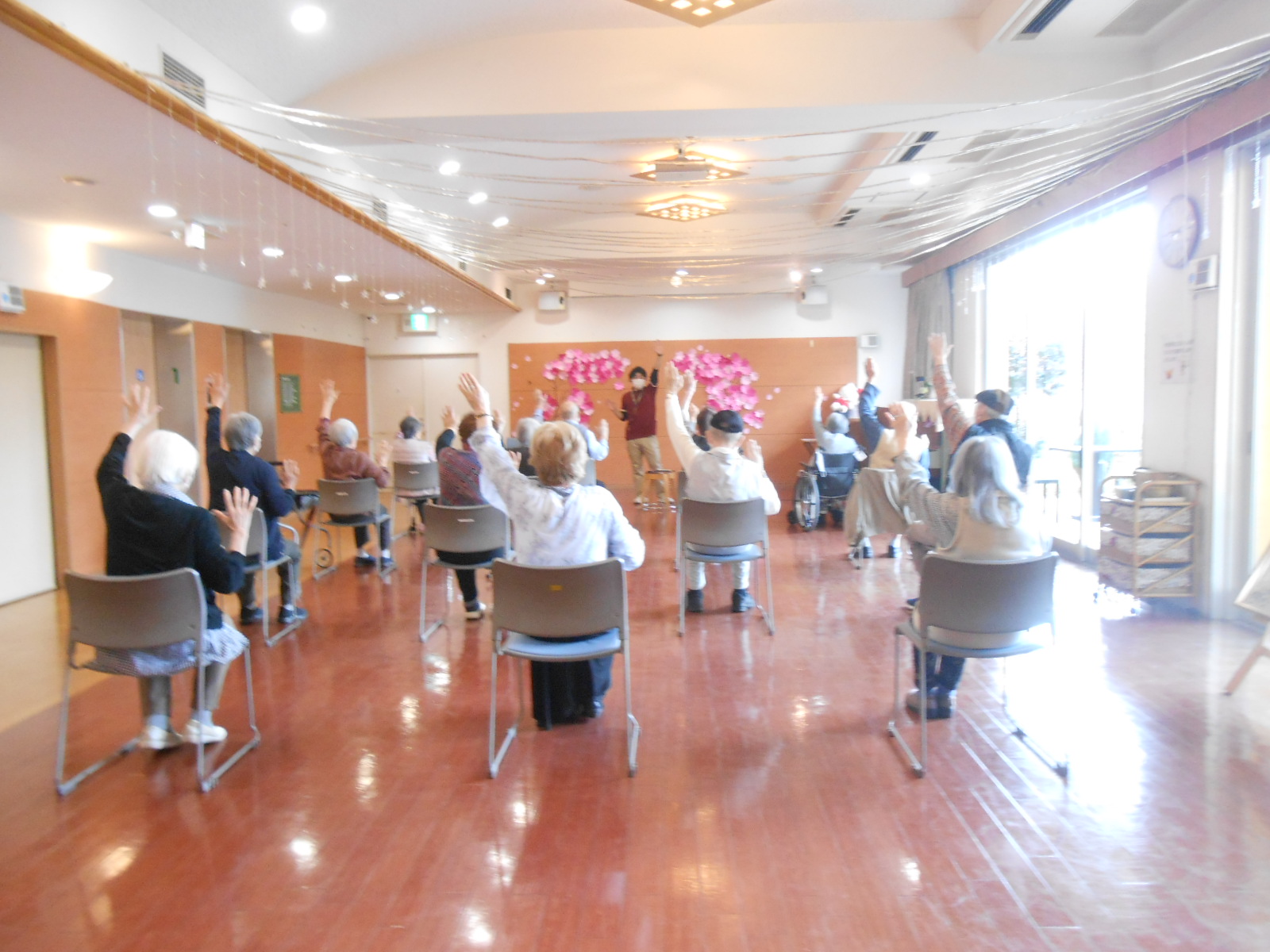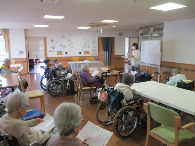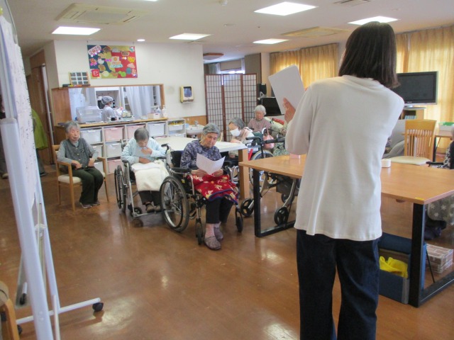 第一金曜日は【朗読会】の日‼今日はたくさんのご利用者様が参加されました(*^-^*)いつもの発声練習から始まり、準備体操などを経て、詩の朗読、手遊び唄、など豊富な内容となっていました‼先生の元気いっぱいの声につられて、皆様しっかりとお腹から声を出されていました(*^▽^*)