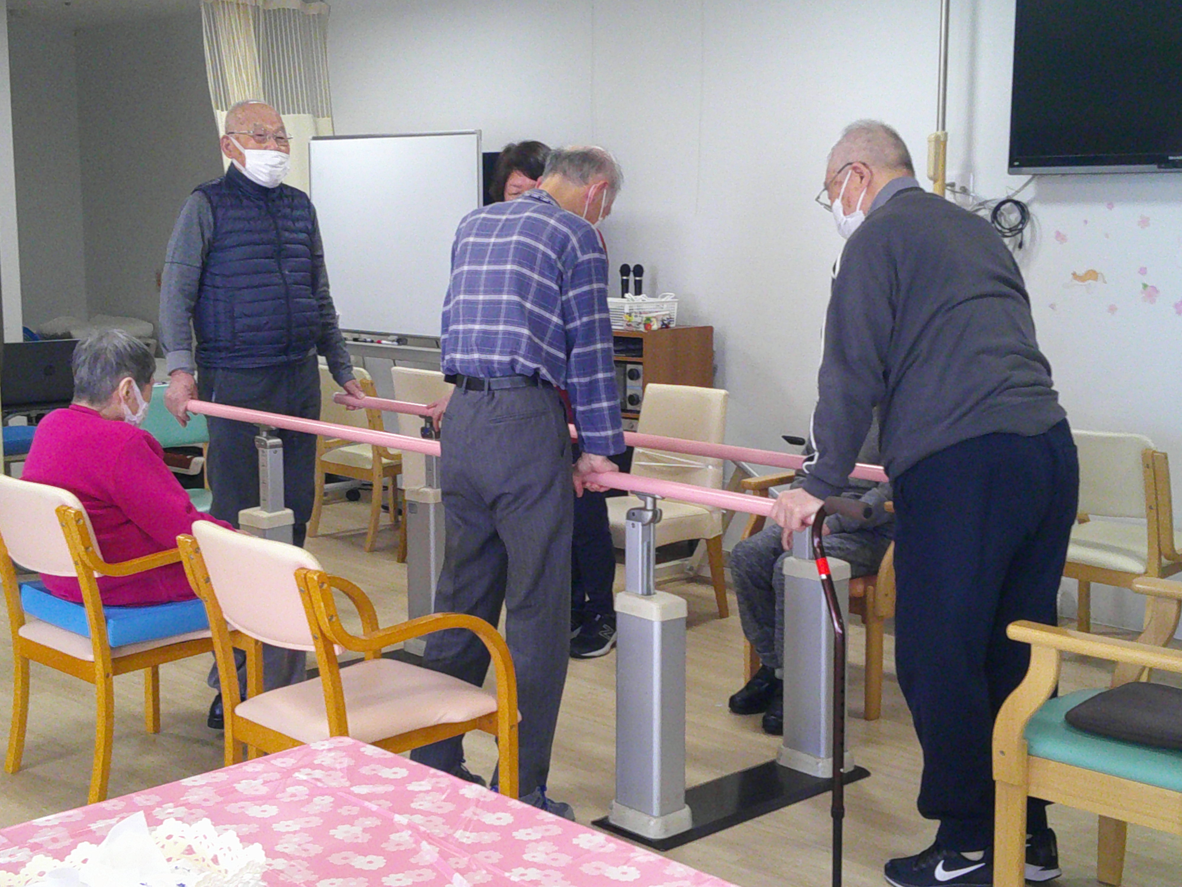 こんにちは、シーハーツ柏です。施設には、機能訓練指導員のスタッフが在籍し、生活リハビリも兼ねて機能訓練の時間を提供させていただいています。 椅子積みゲームを通して、楽しくおしゃべりをしながら、考える力をパワーアップ。 「○○さん、25個 積むことができたら、施設長が1年分のお菓子をプレゼントしますので!」と、プレッシャー?をかけていました。そんな楽しい時間です。