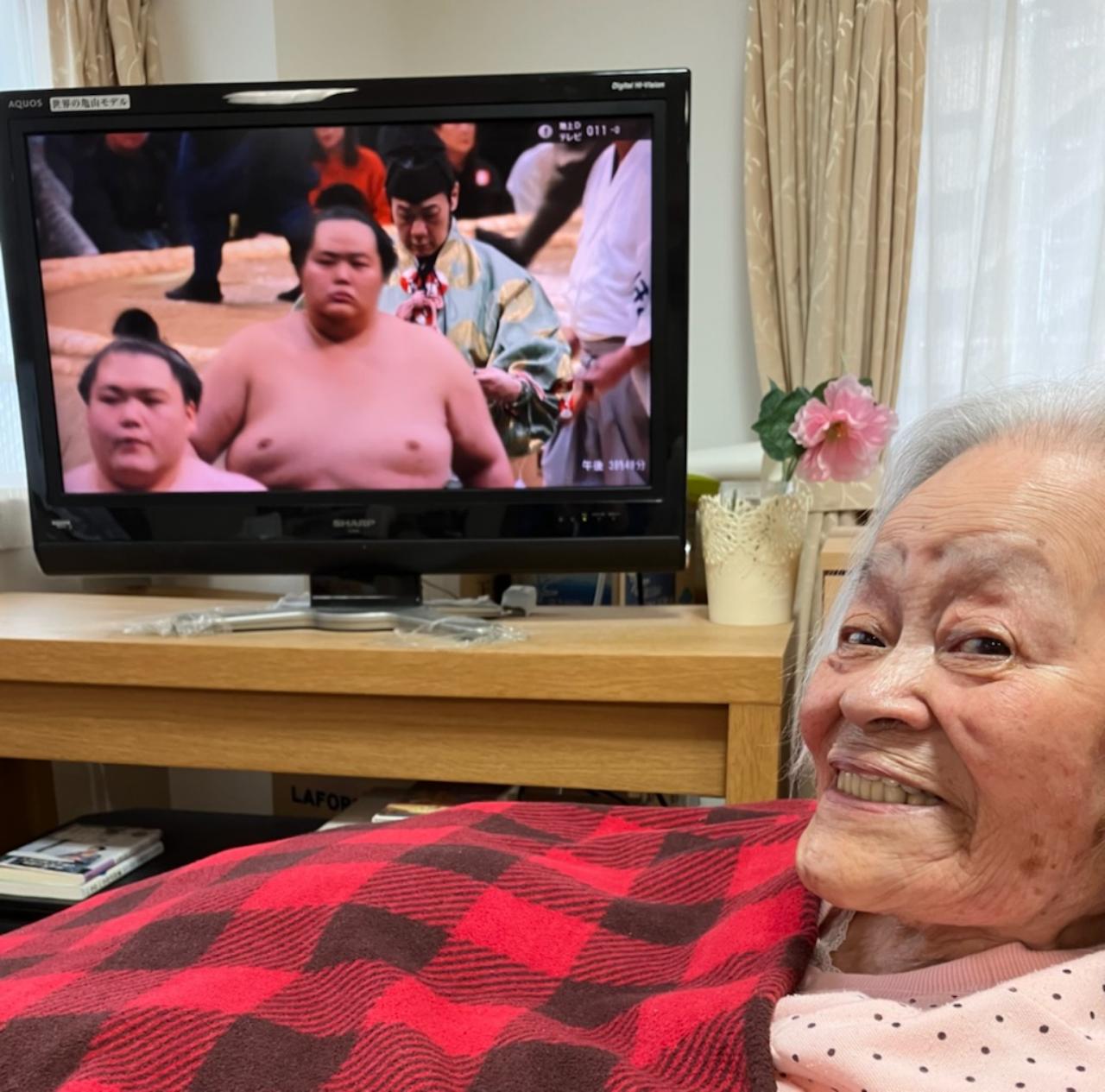 リビングで大相撲をご覧になられている利用者様がおられました!