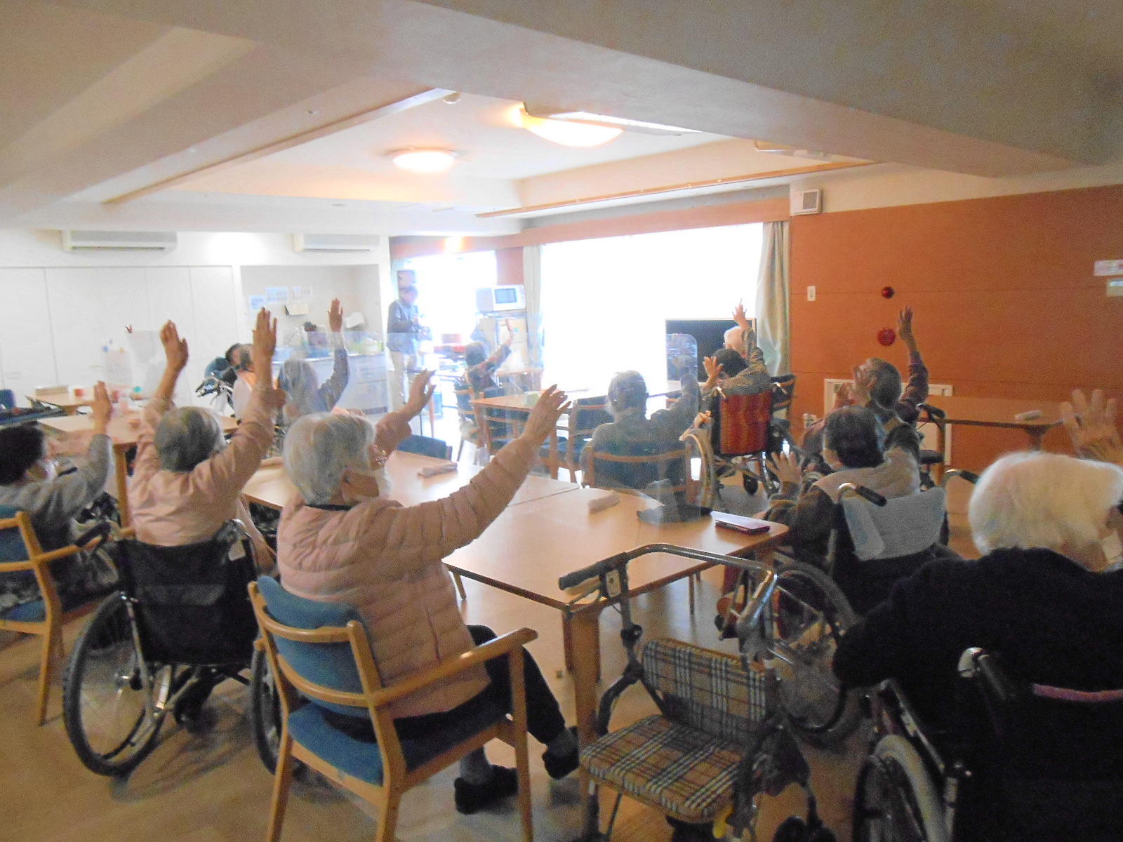 歌が好きな入居者様は開始時間よりも早く集まり、待ちきれない様子でカラオケを楽しんでいました。