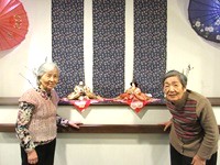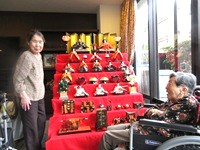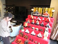 雛人形の前で