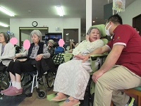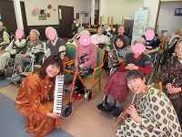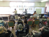 入居者様も一緒に歌ったり 楽器のプチ情報を聞いたり