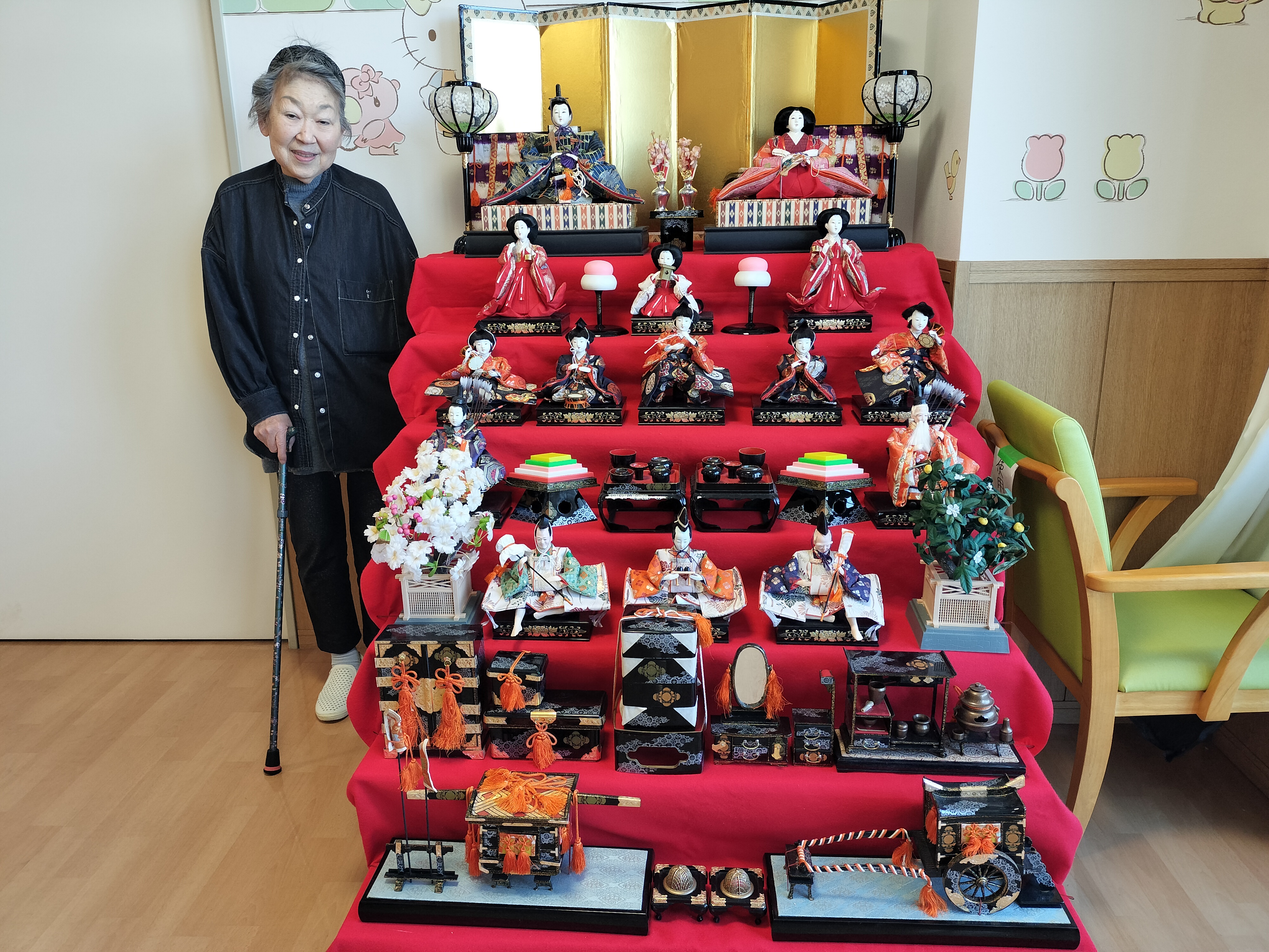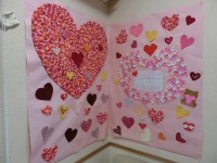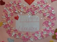 2月14日はバレンタインということで、デイサービスの壁画がまた華やかになりました。