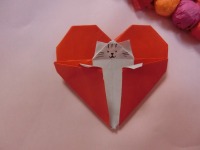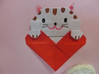 お花紙で大きな💛を作ったり、毛糸でたくさん鎖編みを作り💛の形に仕上げたり、折り紙で作った💛にはニャンコが隠れていたりと遊び心もある作品に。