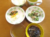 「鶏肉の味噌マヨ和え、甘さと塩気が最高!マスカットゼリーでお口直しも最高です、幸せ♡」