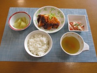 「カラッと揚がったチキンカツは、ボリュ-ム満点でお腹一杯になるわ」( ^)o(^ )