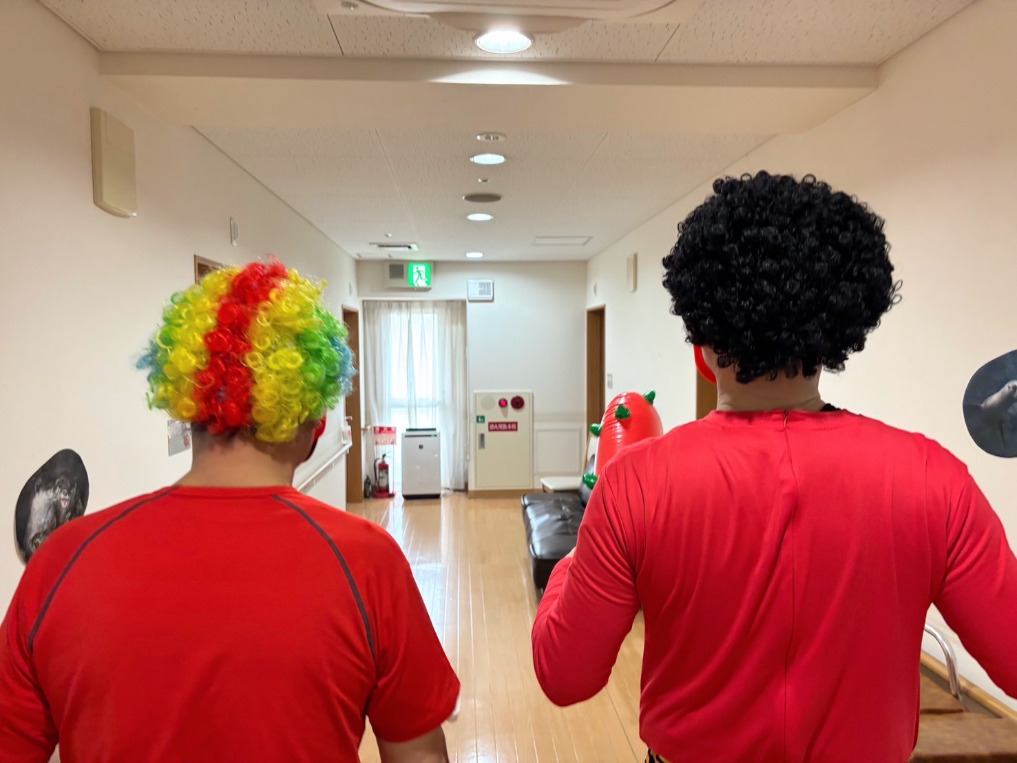 背の高い男性スタッフ2人による「赤鬼」と「青鬼」が